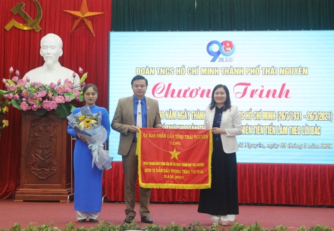 Thành đoàn Thái Nguyên nhận Cờ đơn vị dẫn đầu phong trào thi đua năm 2020 do UBND tỉnh tặng.