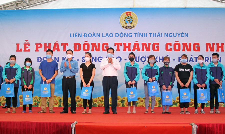 Sáng 29-4, tại Chi nhánh May Sông Công (Công ty CP Đầu tư và Thương mại TNG), Liên đoàn Lao động (LĐLĐ) tỉnh đã tổ chức Lễ phát động Tháng Công nhân năm 2021 với chủ đề “Đoàn kết, sáng tạo, vượt khó, phát triển”. Dự buổi lễ có các đồng chí: Phạm Hoàng Sơn, Phó Bí thư Thường trực Tỉnh ủy, Chủ tịch HĐND tỉnh; Vũ Duy Hoàng, Uỷ viên Ban Thường vụ, Trưởng Ban Tuyên giáo Tỉnh ủy; Dương Văn Tiến, Uỷ viên Ban Thường vụ, Trưởng Ban Dân vận Tỉnh ủy; Lê Quang Tiến, Phó Chủ tịch UBND tỉnh; lãnh đạo Tổng LĐLĐ Việt Nam cùng hơn 800 công nhân đang làm việc tại các công ty, doanh nghiệp trên địa bàn tỉnh...