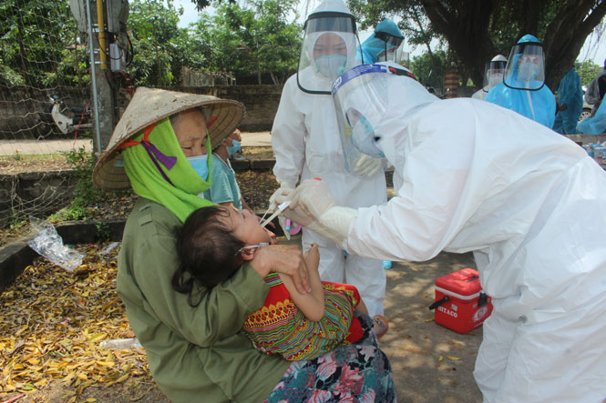 Các y, bác sĩ lấy mẫu xét nghiệm cho người dân xóm Phú Dương 2.