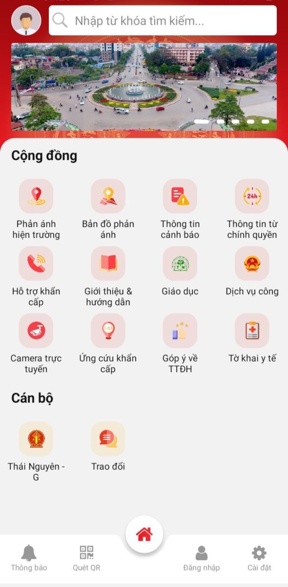 Dao diện ứng dụng "C-ThaiNguyen" trên điện thoại thông minh.