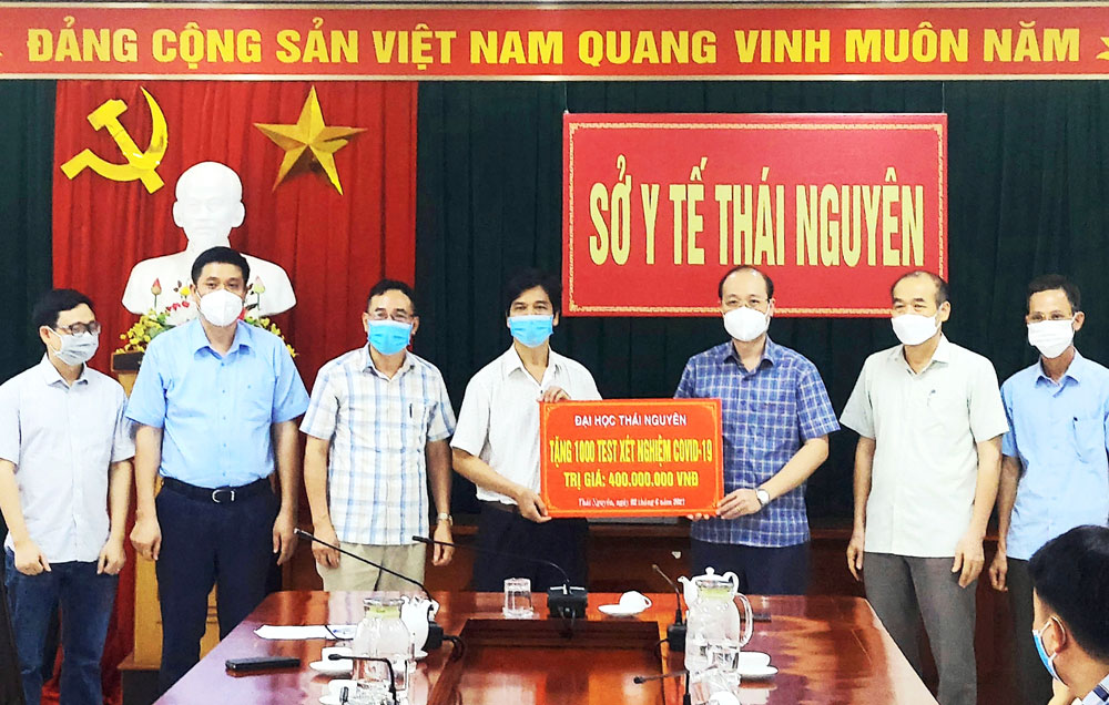 Chiều 2-6, tại Sở Y tế, Đại học Thái Nguyên (ĐHTN) đã tặng 1.000 bộ test xét nghiệm SARS-CoV-2, trị giá 400 triệu đồng cho Ban Chỉ đạo Phòng, chống dịch COVID-19 của tỉnh để phục vụ công tác kiểm soát và phòng, chống dịch.