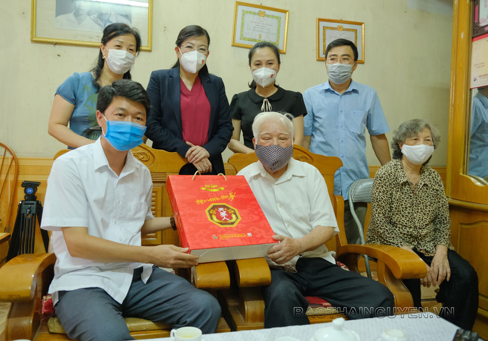 Lãnh đạo Báo Thái Nguyên và Đài Phát thanh - Truyền hình Thái Nguyên đã tặng quà tri ân nhà báo lão thành Đinh Văn Nhân.