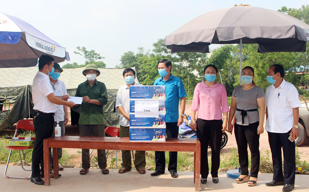 Hội Doanh nghiệp T.X Phổ Yên đã phối hợp với Ủy ban MTTQ thị xã thăm, tặng quà tại Chốt kiểm soát phòng, chống dịch COVID-19, xóm Liên Minh, xã Hồng Tiến.