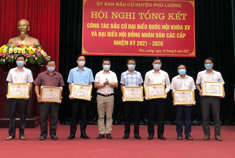 Nhân dịp này đã có 4 tập thể, 4 cá nhân được nhận Bằng khen của Chủ tịch UBND tỉnh; 36 tập thể, 90 cá nhân được nhận Giấy khen của UBND huyện vì đã có thành tích xuất sắc trong công tác bầu cử đại biểu Quốc hội khóa XV và đại biểu HĐND các cấp, nhiệm kỳ 2021-2026.