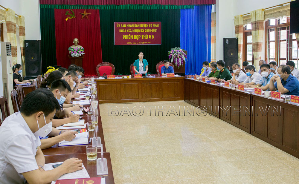 Ngày 14-6, UBND huyện Võ Nhai đã tổ chức phiên họp thường kỳ thứ 55 đánh giá kết quả thực hiện nhiệm vụ mục tiêu kinh tế - xã hội 6 tháng đầu năm, triển khai nhiệm vụ và giải pháp thực hiện 6 tháng cuối năm 2021 (ảnh).