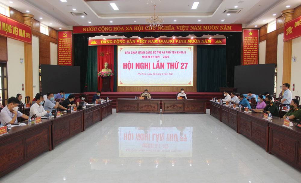 Sáng 6-8, Ban Chấp hành Đảng bộ T.X Phổ Yên đã tổ chức Hội nghị lần thứ 27 nhằm đánh giá công tác lãnh đạo, chỉ đạo về tình hình phát triển kinh tế - xã hội và kết quả phòng, chống dịch COVID-19 trên địa bàn (ảnh).