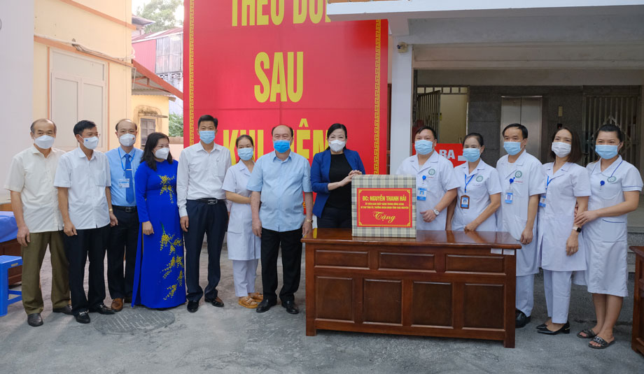 Sau khi tham quan các khu vực của nhà đa năng, đồng chí Bí thư Tỉnh ủy đã ghi nhận sự nỗ lực, cố gắng của các cán bộ, nhân viên của Trung tâm Y tế T.P Thái Nguyên trong công tác phòng, chống dịch trên địa bàn thời gian qua. Đồng chí cũng cảm ơn tấm lòng hảo tâm của đơn vị tài trợ, đã giúp T.P Thái Nguyên nói riêng, tỉnh nói chung trong công tác phòng, chống dịch COVID-19, đồng thời cũng mong muốn các đơn vị, doanh nghiệp, các nhà hảo tâm tiếp tục có những đóng góp ý nghĩa, thiệt thực, chung sức với tỉnh trong cuộc chiến với “giặc” COVID-19 để sớm vượt qua dịch bệnh và đẩy mạnh phục hồi phát triển kinh tế - xã hội.