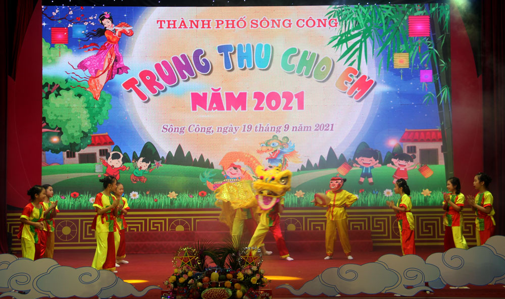 Nhân dịp này, Lãnh đạo Thành ủy và UBND T.P Sông Công đã gửi lời chúc mừng tới các em thiếu nhi trên địa bàn, chúc các em có một Tết Trung thu vui vẻ, đầm ấm và an toàn; đồng thời trao tặng những phần quà ý nghĩa để thiếu nhi ở các xã, phường tổ chức vui trung thu tại địa phương.