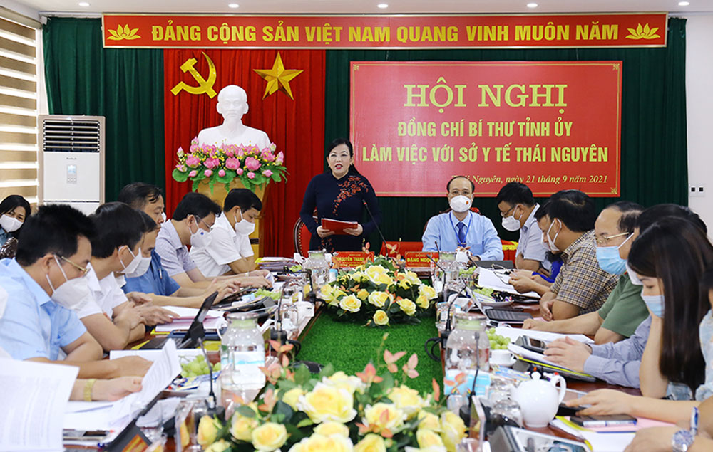 Tuy nhiên, đồng chí đề nghị trong thời gian tới, ngành Y tế phải tiếp tục bám sát các mục tiêu, nhiệm vụ, giải pháp phát triển kinh tế - xã hội giai đoạn 2020-2025 của tỉnh để thực hiện tốt công tác củng cố y tế cơ sở; làm tốt công tác khám, chữa bệnh bảo hiểm y tế, phát triển bảo hiểm y tế toàn dân; làm tốt công tác phòng, chống dịch COVID-19; triển khai nhanh, an toàn chiến dịch tiêm vắc xin phòng COVID-19 đảm bảo tiến độ, an toàn, hiệu quả; tiếp tục triển khai và thực hiện có hiệu quả Đề án phát triển công nghệ thông tin y tế thông minh giai đoạn 2021-2025 tỉnh Thái Nguyên. Đồng thời, tiếp tục phối hợp với các đơn vị liên quan quan tâm đến công tác đào tạo cán bộ, nhất là các chuyên ngành còn thiếu; tham mưu, thực hiện đầy đủ chính sách cho cán bộ tuyến đầu chống dịch; kịp thời động viên, tạo điều kiện thuận lợi cho cán bộ y tế hoàn thành nhiệm vụ, an tâm công tác.