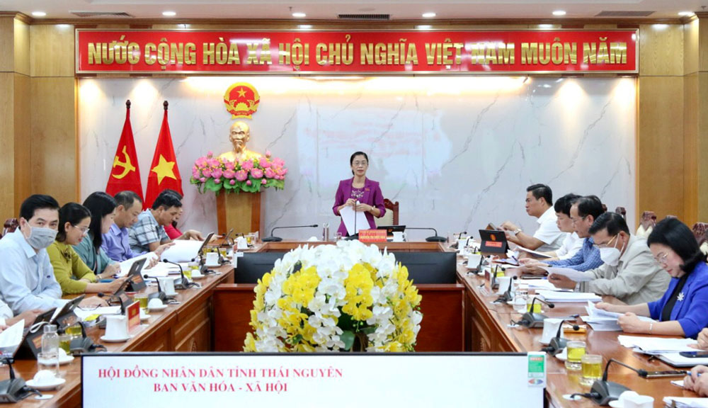 Có 5 nội dung Ban Văn hóa - Xã hội chủ trì thẩm tra, gồm: Tờ trình, dự thảo nghị quyết thông qua đề án nâng cao chất lượng dạy và học tiếng Anh trong các cơ sở giáo dục mầm non, giáo dục phổ thông trên địa bàn tỉnh, giai đoạn 2021-2025, tầm nhìn đến năm 2030; Tờ trình, dự thảo nghị quyết quy định một số chính sách hỗ trợ dạy và học tiếng Anh trên địa bàn tỉnh; Tờ trình, dự thảo nghị quyết ban hành danh mục dịch vụ sự nghiệp công sử dụng ngân sách nhà nước trong lĩnh vực thông tin và truyền thông tỉnh Thái Nguyên; Tờ trình, dự thảo nghị quyết quy định mức chuẩn trợ giúp xã hội, mức trợ giúp xã hội đối với đối tượng bảo trợ xã hội và đối tượng khó khăn khác trên địa bàn tỉnh; Tờ trình, dự thảo nghị quyết về việc điều chỉnh chủ trương đầu tư Dự án xây dựng sân vận động Thái Nguyên. Ngoài ra, Ban cũng phối hợp thẩm tra đối với 9 nội dung khác.