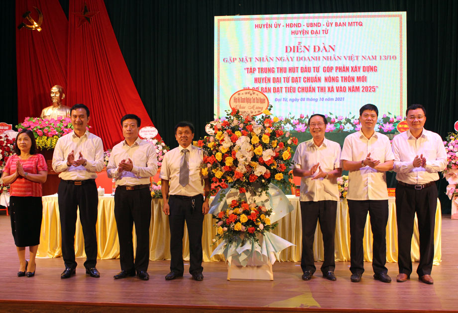 Chiều 8-10, huyện Đại Từ đã tổ chức gặp mặt các doanh nghiệp, doanh nhân tiêu biểu trên địa bàn nhân Ngày Doanh nhân Việt Nam (13-10). Dự buổi gặp mặt có đồng chí Vũ Duy Hoàng, Ủy viên Ban Thường vụ, Trưởng Ban Tuyên giáo Tỉnh ủy, đại diện một số sở, ngành và trên 170 đại diện các doanh nghiệp, hợp tác xã, các nhà đầu tư trên địa bàn.