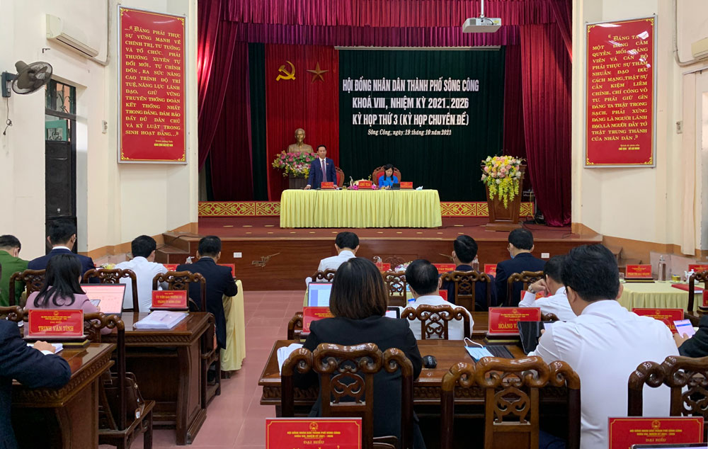 Sáng 19-10, HĐND T.P Sông Công khóa VIII, nhiệm kỳ 2021-2025 đã tổ chức Kỳ họp thứ 3 (kỳ họp chuyên đề) nhằm xem xét, thông qua một số báo cáo, tờ trình và nghị quyết liên quan đến phát triển kinh tế - xã hội tại địa phương (ảnh).