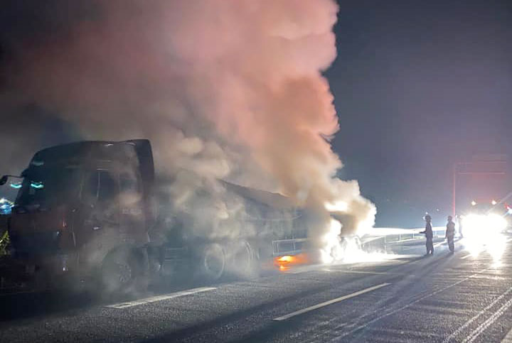 Vụ việc xảy ra vào khoảng 22 giờ 30 phút ngày 25-10, xe tải đầu kéo mang biển kiểm soát 90R-00570 đang chở thép chạy trên cao tốc Hà Nội - Thái Nguyên khi đến gần Trạm dừng nghỉ Hải Đăng thì bốc cháy. Nguyên nhân ban đầu được xác định là do bó phanh.