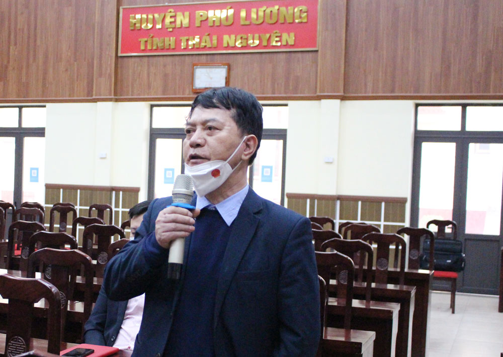 Cử tri huyện Phú Lương nêu ý kiến tại buổi tiếp xúc.