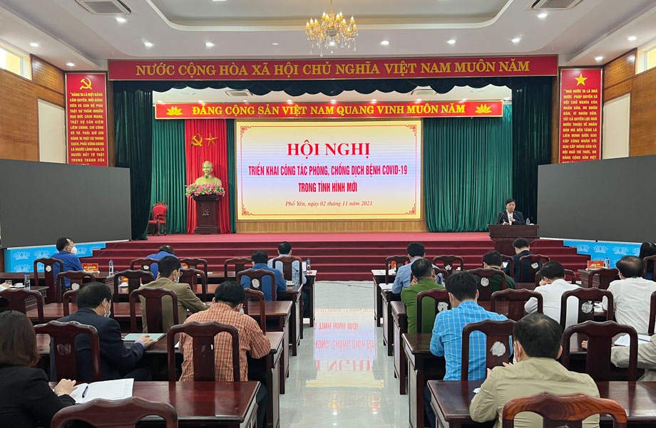 Trước diễn biến phức tạp của tình hình dịch COVID-19 trên địa bàn tỉnh, chiều 2-11, Ban Chỉ đạo phòng, chống dịch COVID-19 T.X Phổ Yên tổ chức Hội nghị triển khai công tác phòng, chống dịch COVID-19 trong tình hình mới (ảnh).