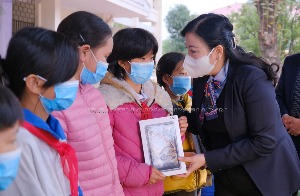 Đồng chí cũng mong muốn, những chiếc máy tính bảng được trao tặng hôm nay sẽ nguồn lực quý báu giúp các em học sinh vượt qua khó khăn, cố gắng vươn lên học tập tốt, trở thành con ngoan, trò giỏi, cháu ngoan Bác Hồ.
