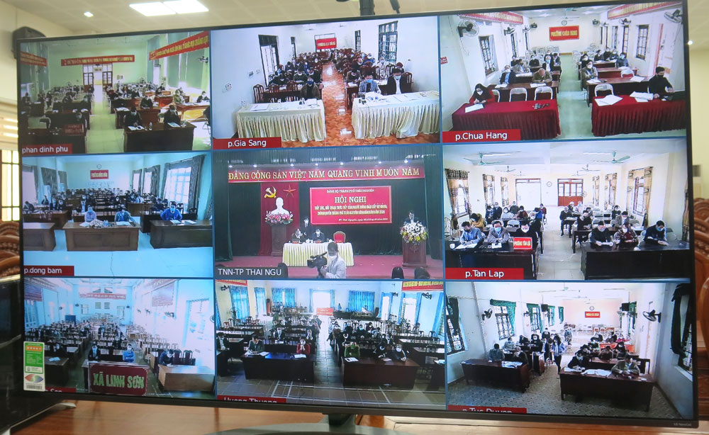 Hội nghị được tổ chức theo hình thức trực tuyến, kết nối với 8 điểm cầu các xã, phường: Túc Duyên, Gia Sàng, Phan Đình Phùng, Tân Lập, Chùa Hang, Đồng Bẩm, Linh Sơn, Huống Thượng.