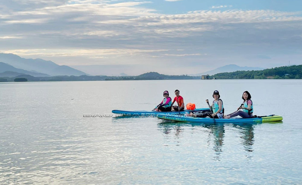 Du khách luôn yêu thích không khí trong lành và cảnh sắc tự nhiên của hồ Núi Cốc. Ảnh: D.V