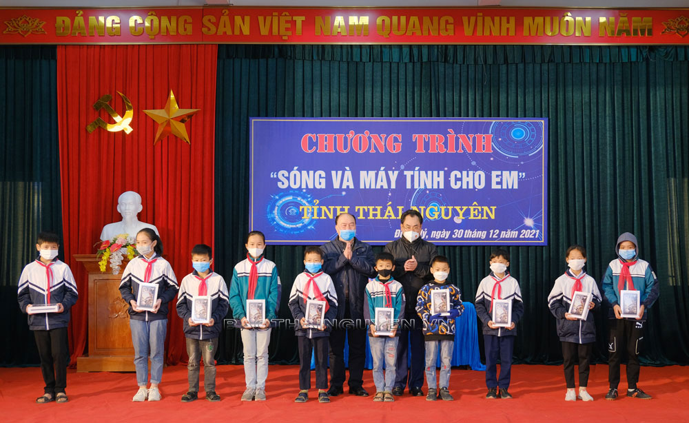 Tại Chương trình, đồng chí Chủ tịch UBND tỉnh đã trao trực tiếp 30 máy tính bảng cho 30 em học sinh có hoàn cảnh khó khăn chưa có thiết bị học trực tuyến của các trường: Tiểu học Sông Cầu, THCS Sông Cầu, Phổ thông dân tộc nội trú THCS Đồng Hỷ.