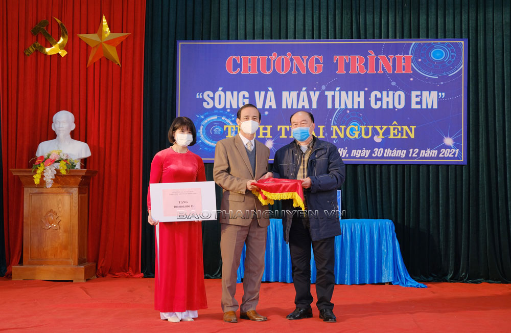 * Tại Trường THCS Nguyễn Du (T.P Thái Nguyên), đồng chí Phan Mạnh Cường, Ủy viên Ban Thường vụ Tỉnh ủy, Bí thư Thành ủy Thái Nguyên đến trao tặng thiết bị học trực tuyến cho 32 học sinh nghèo từ cấp Tiểu học đến THPT trên địa bàn.