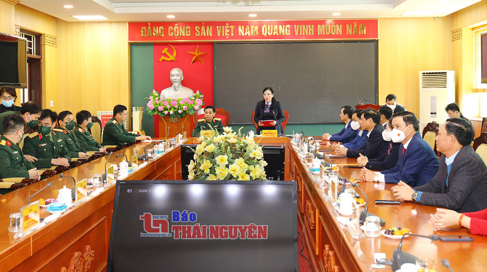 Nhân dịp Tết Nguyên đán Nhâm Dần 2022, đồng chí Bộ trưởng Bộ Quốc phòng gửi lời chúc mừng một năm mới thành công, thắng lợi đến Đảng bộ, chính quyền, Nhân dân các dân tộc tỉnh Thái Nguyên cùng cán bộ, chiến sĩ những đơn vị đến thăm.
