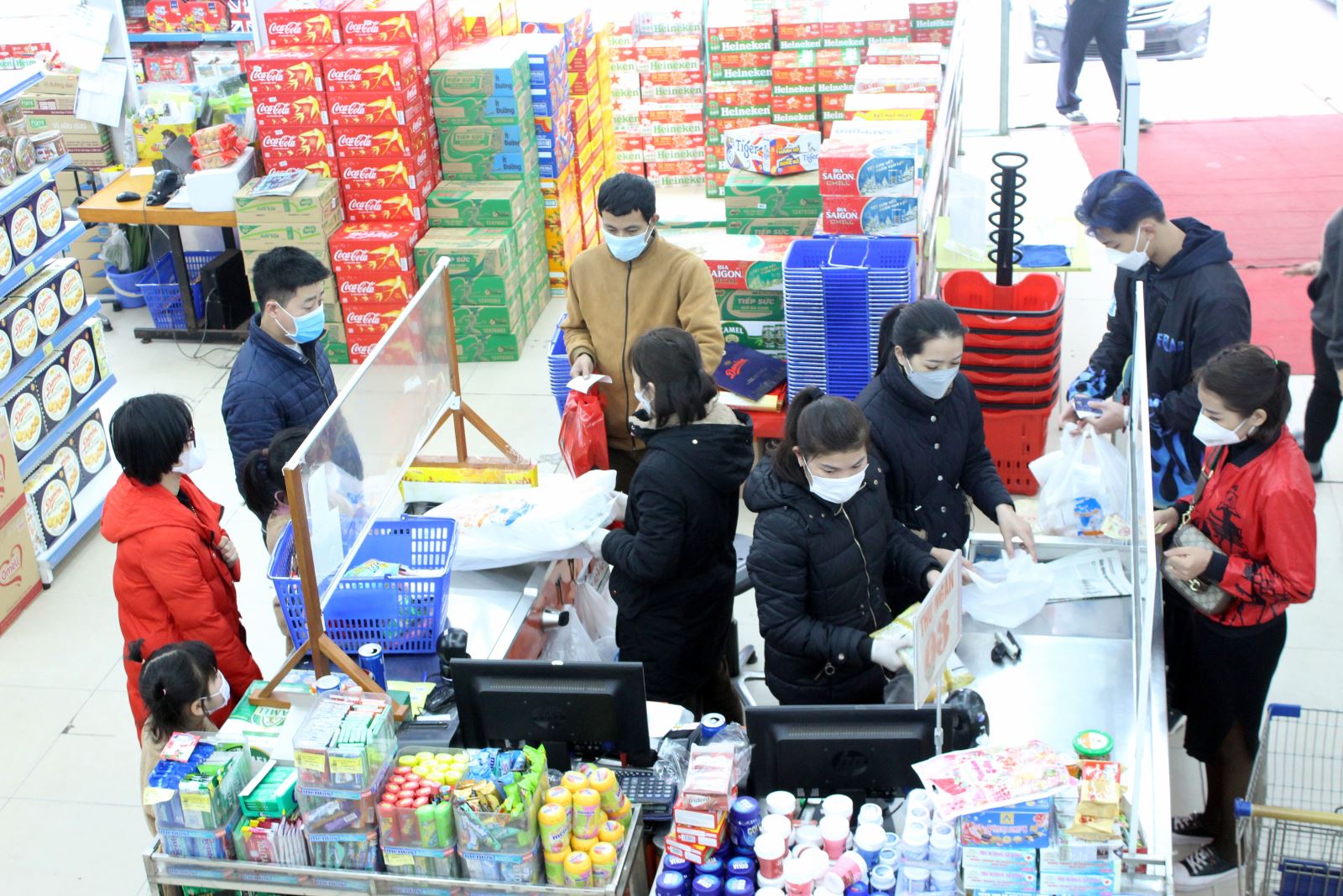 Chiều 29 Tết, vẫn có rất đông người dân đến mua sắm Tết tại siêu thị Minh Cầu.
