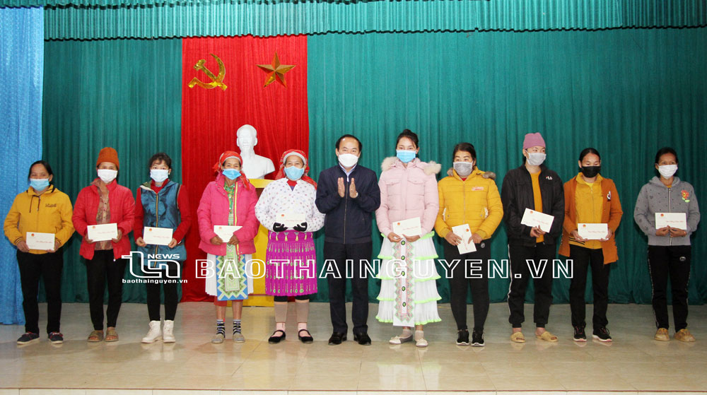 Lãnh đạo Ban Dân tộc tỉnh tặng quà Tết các gia đình chính sách tại xóm Chòi Hồng, xã Tràng Xá (Võ Nhai) nhân dịp Xuân Nhâm Dần 2022.