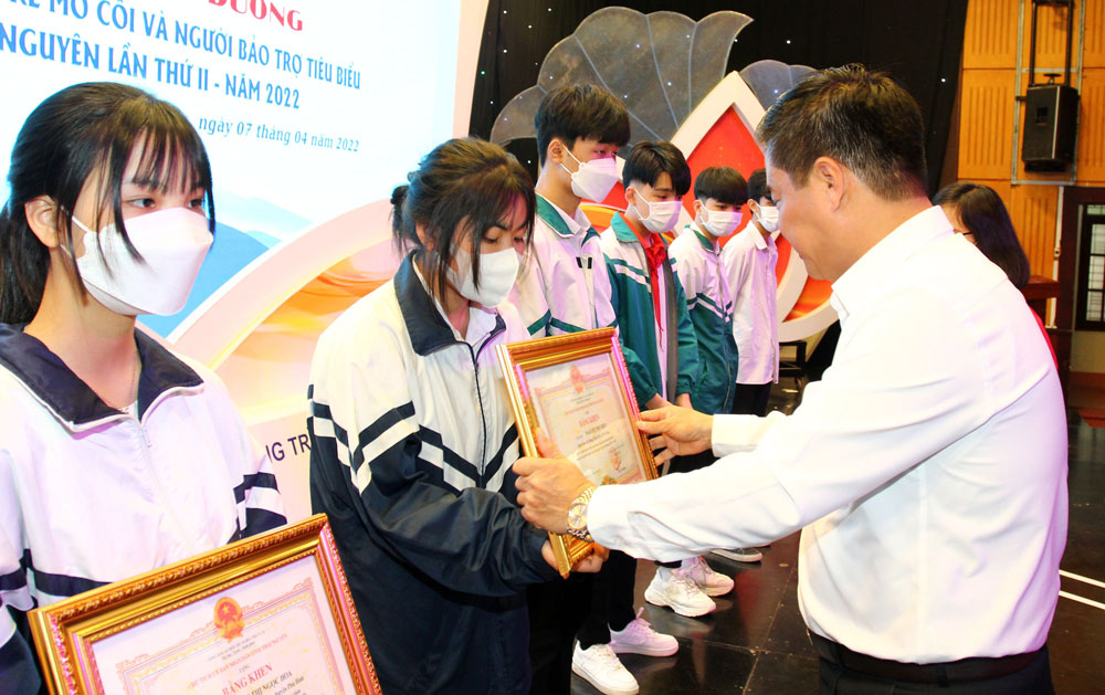 Tặng Bằng khen cho trẻ em mồ côi vượt qua hoàn cảnh đặc biệt khó khăn vươn lên đạt kết quả cao trong học tập.