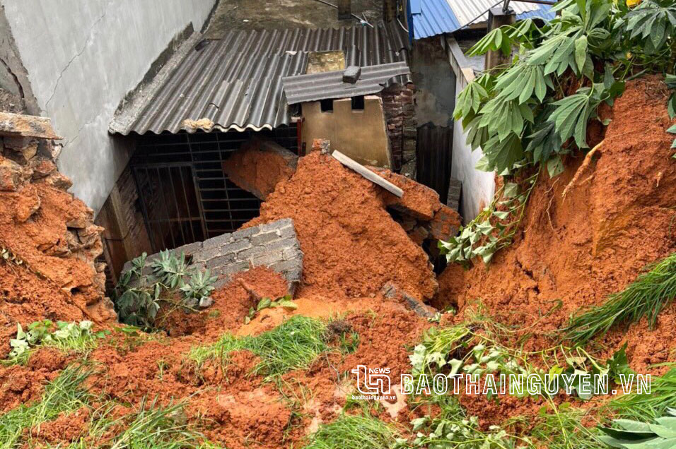 Tại TP. Thái Nguyên, đèo Cao Chã (giáp ranh giữa 2 xã Phúc Xuân – Phúc Trìu) sạt lở khoảng 20m, khối lượng khoảng 500m3.