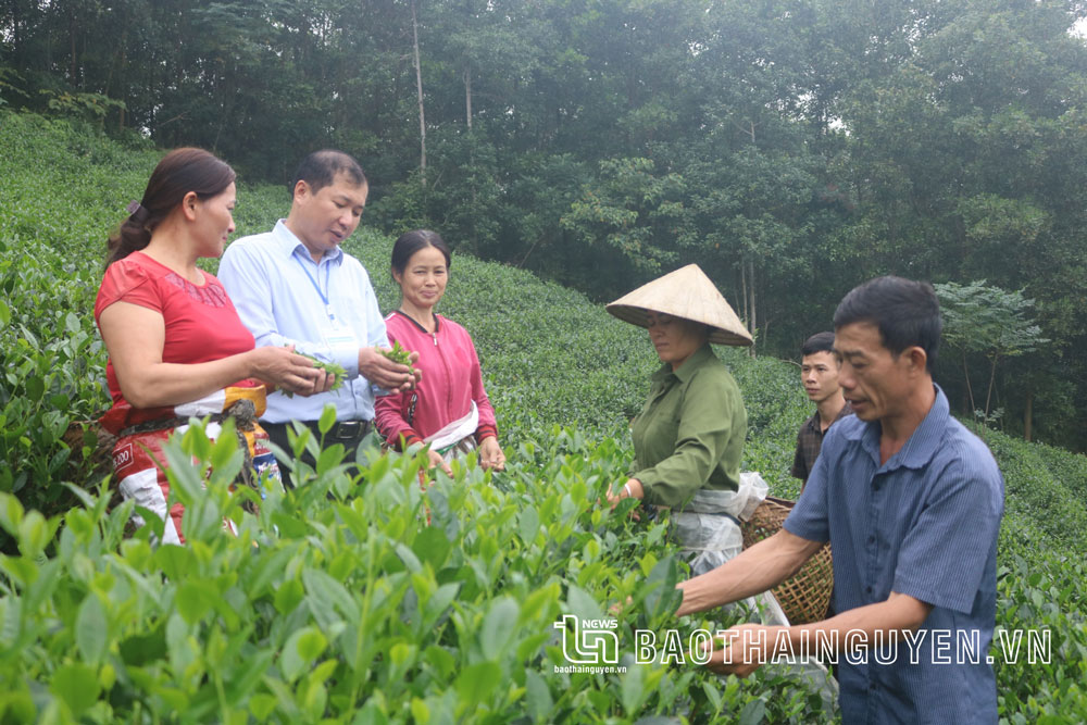Cán bộ, nhân dân huyện Định Hóa trao đổi kinh nghiệm sản xuất, chế biến chè chất lượng cao.