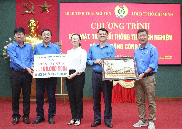 Nhân dịp này, LĐLĐ TP. Hồ Chí Minh trao tặng 100 suất quà trị giá 100 triệu đồng cho công nhân, người lao động có hoàn cảnh khó khăn trên địa bàn tỉnh Thái Nguyên.