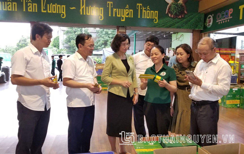 Đoàn công tác của tỉnh Bình Phước thăm Hợp tác xã chè Hảo Đạt ở xã Tân Cương (TP. Thái Nguyên).