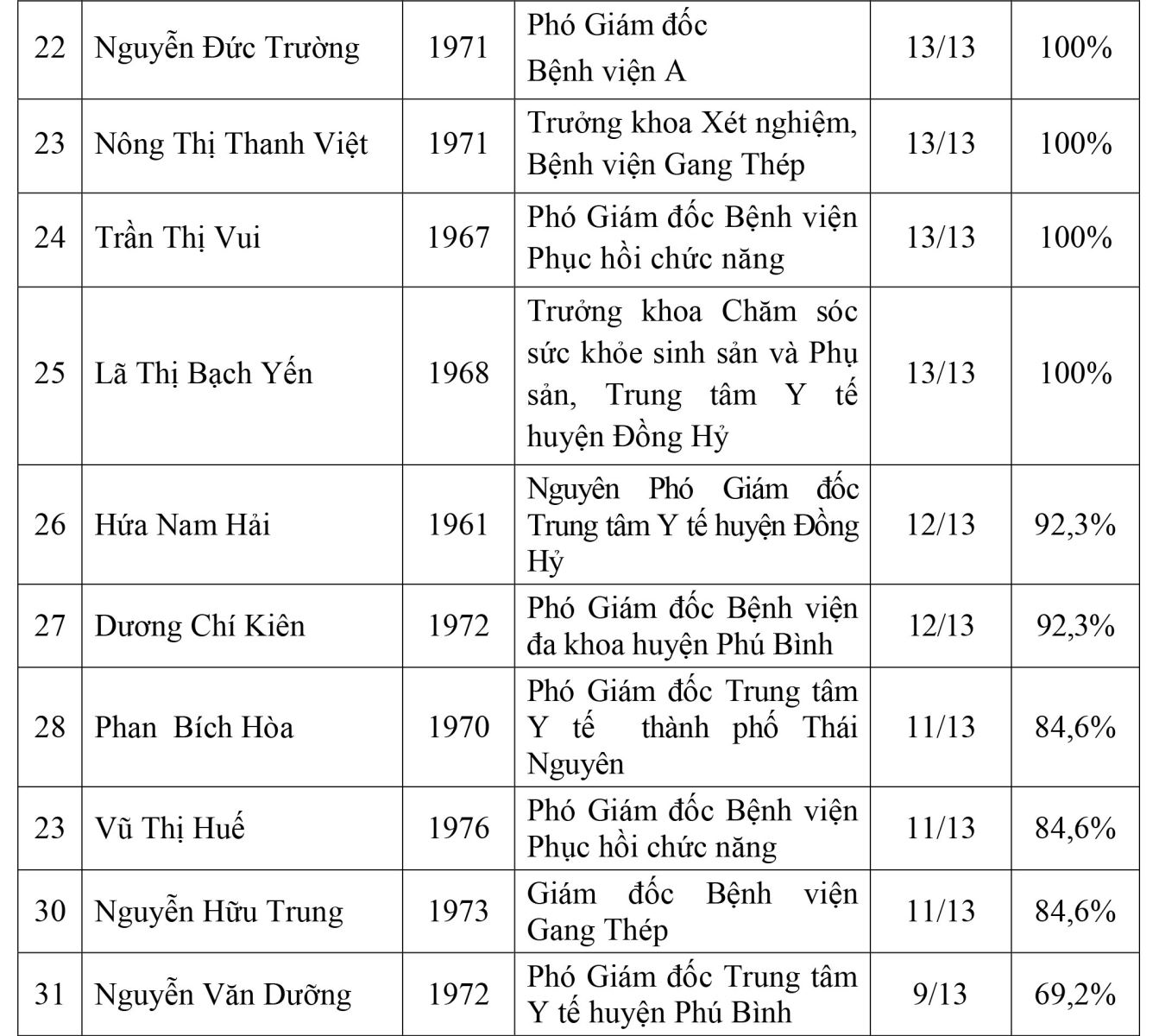 - Số cá nhân đạt trên 90% số phiếu Hội đồng cấp tỉnh, đủ điều kiện trình Hội đồng cấp Nhà nước xét tặng danh hiệu “Thầy thuốc Ưu tú” là 27 cá nhân.