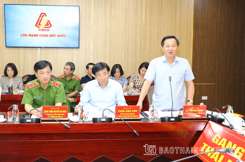Phó Thủ tướng Lê Minh Khái và các đại biểu phát biểu tại buổi làm việc.