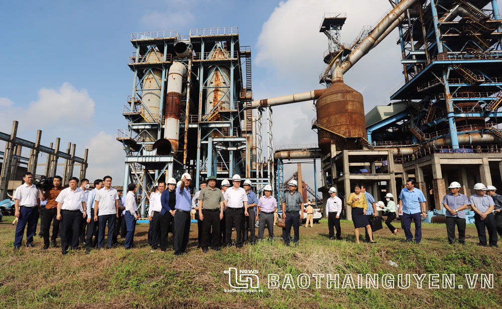 Trước khi làm việc, Thủ tướng Chính phủ Phạm Minh Chính và Đoàn công tác của Chính phủ kiểm tra, khảo sát khu vực Dự án mở rộng giai đoạn 2 Nhà máy Gang thép Thái Nguyên và tham quan Nhà máy Cán thép Thái Trung.