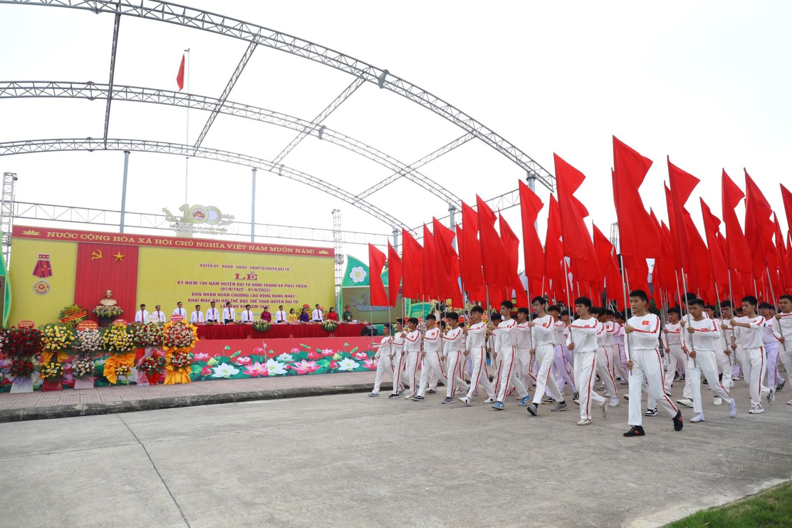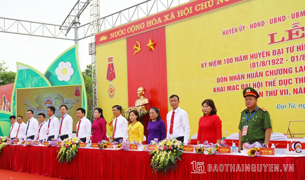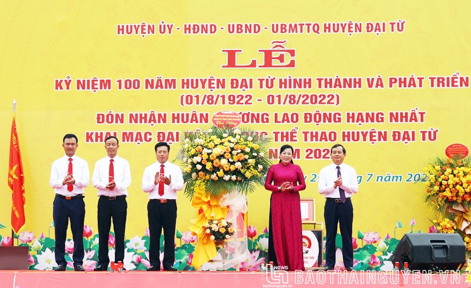 Sáng nay (29-7), tại Quảng trường 27-7 (ở tổ dân phố Bàn Cờ, thị trấn Hùng Sơn), Huyện ủy, HĐND, UBND, Ủy ban MTTQ huyện Đại Từ long trọng tổ chức Lễ kỷ niệm 100 năm huyện Đại Từ hình thành và phát triển (1/8/1922 - 1/8/2022); đón nhận Huân chương Lao động hạng Nhất và khai mạc Đại hội Thể dục thể thao huyện Đại Từ lần thứ VII năm 2022. Nhân dịp này, Tổng Bí thư Nguyễn Phú Trọng gửi lẵng hoa chúc mừng Đảng bộ, chính quyền và Nhân dân các dân tộc huyện Đại Từ.