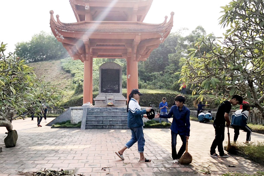 Đoàn Thanh niên và học sinh xã Bản Ngoại (Đại Từ) tổ chức vệ sinh điểm di tích lịch sử đồi Thành Trúc, ở xóm Đầm Mua, nơi Bác Hồ từng ở và làm việc từ tháng 8 đến tháng 10-1954. Ảnh: T.L