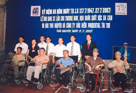 Hướng tới kỷ niệm 60 năm Ngày Thương binh liệt sĩ (27-7), ngày 5-7, Báo Thái Nguyên đã phối hợp với Công ty bảo hiểm Prudential tại Việt Nam tổ chức lễ trao tặng 15 chiếc xe lăn cho các đồng chí thương binh nặng và nạn nhân chất độc da cam. Đồng chí Nguyễn Văn Vượng, Phó Bí thư Thường trực Tỉnh ủy, Chủ tịch HĐND tỉnh đến dự.