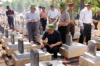 Tại đây, Đoàn đại biểu tỉnh Thái Nguyên đã đặt vòng hoa, làm lễ tưởng niệm hương hồn 256 chiến sỹ là con em của Thái Nguyên và Bắc Kạn. Các thành viên trong Đoàn đã đi thắp hương từng phần mộ của con em quê hương hy sinh vì sự nghiệp đấu tranh giải phóng miền Nam, thống nhất đất nước.