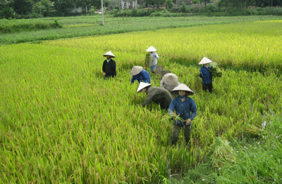 Hiện nay, bà con nông dân trên địa bàn huyện đang tiến hành thu hoạch lúa xuân được gần 2.000 ha. Dự ước năng suất lúa đạt trên 50 tạ/ha.