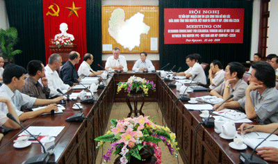 Sáng 22-7, UBND tỉnh đã làm việc với các ngành liên quan và Công ty IKP Cộng hòa CZECH để nghe báo cáo về Quy hoạch tổng thể và chi tiết Khu Du lịch sinh thái hồ Núi Cốc. Đồng chí Phạm Xuân Đương, Phó Bí thư Tỉnh uỷ, Chủ tịch UBND tỉnh chù trì buổi làm việc.