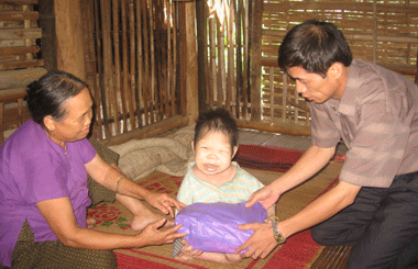 Tại Định Hóa, lãnh đạo Báo Thái Nguyên đã đến thăm và tặng quà cháu Nông Thị Hậu, sinh năm 1976, ở xóm Bản Giáo, xã Điềm Mặc. Cháu Hậu năm nay hơn 30 tuổi nhưng nhỏ như đứa trẻ lên 5, mắt kém, thiểu năng trí tuệ. Cháu Ma Đức Định, ở xóm Làng Há, xã Lam Vĩ bị thuỷ não.