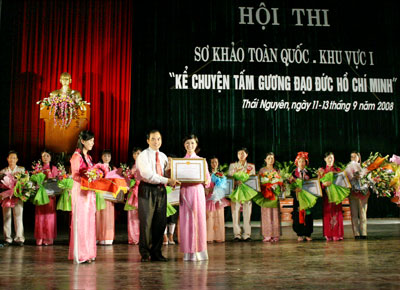 Sau ba ngày Hội thi sôi nổi, tối 13-9, tại Trung tâm Hội nghị và Văn hoá tỉnh Thái Nguyên, Hội thi sơ khảo toàn quốc khu vực I ''Kể chuyện tấm gương đạo đức Hồ Chí Minh'' đã bế mạc.