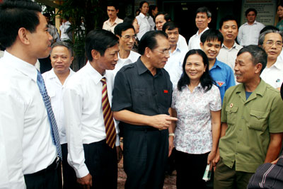 Buổi chiều cùng ngày, Tổng Bí thư Nông Đức Mạnh và Đoàn Đại biểu Quốc hội tỉnh đã có buổi tiếp xúc với cử tri phường Cải Đan, một trong những phường trung tâm của T.X Sông Công.