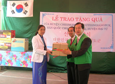Ngày 26/11, lãnh đạo huyện Cheongdo, tỉnh Kieng Sang Buk (Hàn Quốc) đã dẫn đầu Đoàn công tác đến thăm và tặng quà Trường tiểu học và Trường THCS xã Tân Thái, huyện Đại Từ (ảnh). Đồng chí Trịnh Thị Cúc, Ủy viên Ban Thường vụ Tỉnh ủy, Phó Chủ tịch UBND tỉnh đã đến dự.