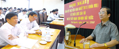 Sáng 2-11, Thường trực Tỉnh uỷ Thái Nguyên đã tổ chức Hội nghị cán bộ chủ chốt tổng kết 10 năm thực hiện Nghị quyết Trung ương 3 khoá VIII (TW3) về chiến lược cán bộ thời kỳ đẩy mạnh CNH- HĐH đất nước. Đồng chí Nguyễn Văn Vượng, Bí thư Tỉnh uỷ chủ trì Hội nghị.