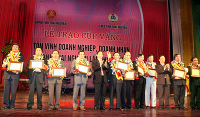 Tối 6-02, tại Trung tâm Hội nghị và Văn hóa tỉnh Thái Nguyên, UBND tỉnh đã tổ chức Lễ trao Cúp vàng cho các doanh nghiệp, doanh nhân tiêu biểu lần thứ nhất năm 2009, nhằm tôn vinh các doanh nghiệp, doanh nhân tích cực thi đua lao động sản xuất hoàn thành xuất sắc nhiệm vụ năm 2008.