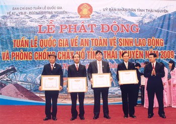 Tại buổi lễ trên 30 tập thể và cá nhân có thành tích xuất sắc trong công tác AT-VSLĐ, PCCN và phong trào Xanh - Sạch - Đẹp, bảo đảm an toàn vệ sinh lao động năm 2008 đã được nhận Cờ thi đua, Bằng khen và Giấy khen của Tổng Liên đoàn Lao động Việt Nam; Bộ Lao động Thương binh - Xã hội; Cục an toàn lao động; Liên đoàn Lao động tỉnh Thái Nguyên. Cũng trong buổi lễ phát động, các đại biểu đã tham gia trồng cây xanh tại Chi nhánh Mỏ đã Núi Voi.