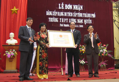 Sáng 13/3, phường Hoàng Văn Thụ và Trường THPT Lương Ngọc Quyến đã long trọng tổ chức Lễ kỷ niệm 49 năm Ngày Bác Hồ về thăm Trường (13/3/1960 – 13/3/2009) và đón nhận Bằng xếp hạng di tích cấp tỉnh đối với di tích lịch sử nơi Bác Hồ về thăm trường (Ảnh).