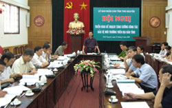 Hội nghị cũng đã triển khai các văn bản, chỉ thị, nghị quyết, hướng dẫn của tỉnh, Trung ương về công tác bảo vệ môi trường như: Chỉ thị của UBND tỉnh về một số giải pháp cấp bách tăng cường công tác bảo vệ môi trường trong thời kỳ đẩy mạnh CNH-HĐH trên địa bàn tỉnh; nghị quyết của Chính phủ về một số giải pháp cấp bách trong công tác quản lý Nhà nước về tài nguyên và môi trường…
